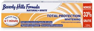 Beverly Hills Natural White Total Protection Whitening Pasta Do Zębów Wybielajšca Całkowita Ochrona Czyci, chroni i wybiela Jeli masz zdrowe zęby i dzišsła, ale chcesz usunšć plamy i przebarwienia, pasta do zębów Beverly Hills Formula Total Protection Whitening to idealne rozwišzanie dla ciebie, ponieważ skutecznie usuwa uporczywe plamy spowodowane herbatš, kawš, czerwonym winem czy papierosami, bez użycia silnych rodków wybielajšcych, a w dodatku działa już po 1 minucie. Pasta Total Protection Whitening ma niski współczynnik cieralnoci, idealnie usuwa przebarwienia oraz nalot nazębny, jest delikatna dla szkliwa, ma podwójne działanie antybakteryjne. Pasta zawiera ksylitol, naturalny cukier, który (jak wykazały badania kliniczne) podnosi poziom pH jamy ustnej, aby zneutralizować kwasy, płytkę nazębnš i hamuje bakterie paciorkowca. Antybakteryjny triclosan jest dodawany, aby zabijać bakterie i wspomagać proces remineralizacji szkliwa. Zawarty w pacie wapń i fluor wzmacniajš szkliwo.
