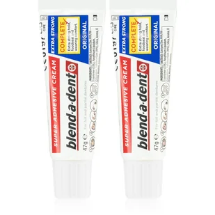 Blend-a-dent Extra Strong Original, 2x47 g, Żele do zębów i dziąseł unisex, Upewnij się, że Twoja proteza zębowa jest nałożona bezpiecznie i wygodnie, bez względu na to, co robisz. Krem utrwalający Blend-a-dent Extra Strong Original mocuje protezę, aby nie doszło do niechcianego przemieszczania się oraz zapewnia całodzienną stabilność. Zrelaksuj się i ciesz się życiem. Właściwości: niezawodnie mocuje protezę zębową zwiększa stabilność protezy zębowej zapewnia użytkownikowi poczucie bezpieczeństwa i komfortu mocna i trwała przyczepność Sposób użycia: