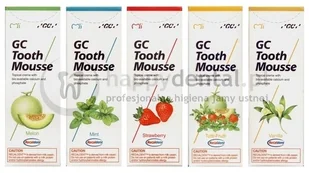 to specjalistyczna pasta do zębów przeznaczona do miejscowego stosowania. GC Tooth Mousse jest pastą do zębów na bazie wody zawierającą rewolucyjny składnik RECALDENT (CPP-ACP: fosfopeptyd kazeiny - amorficzny fosforan wapnia). CPP-ACP wprowadzony do jamy ustnej gromadzi się na błonce nabytej, płytce nazębnej, bakteriach, hydroksyapatytach i tkance miękkiej dostarczając bioaktywny wapń i fosforan. GC Tooth Mousse jest doskonałym sposobem odpierania ataku kwasów produkowanych przed bakterie płytki nazębnej. Nie tylko buforuje kwaśny odczyn i przywraca prawidłową równowagę mineralną w jamie ustnej w zaledwie kilka minut, ale także remineralizuje ubytki w szkliwie, dzięki wysokiemu poziomowi wapnia i fosforu.