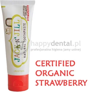 JACK N'JILL to naturalna pasta o smaku truskawki z dużą zawartością Xylitolu. Xylitol redukuje płytkę nazębną oraz wspomaga proces remineralizacji szkliwa. Ekstrakt z nagietka sprawia, że pasta nie podrażni delikatnych dziąseł dziecka. Niepowtarzalny smak pasty skutecznie zachęca dzieci do codziennej pielęgnacji jamy ustnej. Organiczne składniki zapewniają bezpieczeństwo i zdrowie naszych Maluchów.
