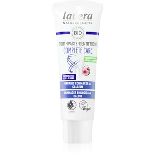 Lavera Complete Care, 75 ml, Bez fluoru unisex, Pasta do zębów Lavera Complete Care nie zawiera fluorków i wzmacnia zęby w sposób naturalny. Jest odpowiednia przede wszystkim do wrażliwych zębów i dziąseł. Właściwości: działa profilaktycznie przeciwko powstawaniu osadu, kamienia i próchnicy zębów gwarantuje delikatną pielęgnację zębów i dziąseł odświeża oddech Skład: produkt wegański Sposób użycia: