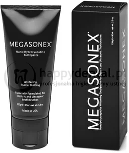Pasta MEGASONEX zawiera nano-hydroksyapatyt, tj. biomateriał, który skutecznie odbudowuje uszkodzenia na powierzchni szkliwa. Dzięki temu sprawia, że zęby są bielsze i odporne na mikrouszkodzenia. Regularne stosowanie pasty z hudroksyapatytem w cząsteczkach nano opóźnia i wyraźnie redukuje ilość płytki nazębnej a także zmniejsza ból związany z nadwrażliwością zębową. Pasta MEGASONEX jest szczególnie skuteczna przy podwyższonej podatności na próchnicę, wrażliwych zębach lub po posiłkach zawierających kwaśny pokarm.