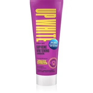 Perl Weiss Up White Supreme Whitening, 75 ml, Pasty wybielające dla kobiet, Pasta do zębów Perl Weiss Up White Supreme Whitening jest przeznaczona do delikatnego wybielania zębów. Skutecznie usuwa niepożądane przebarwienia z zębów, a przy regularnym stosowaniu wynagradza bardziej promiennym uśmiechem. Właściwości: wybiela zęby walczy z próchnicą zębów i osadem nazębnym usuwa kamień i osad nazębny odświeża oddech Sposób użycia: Stosuj co najmniej 2× dziennie.