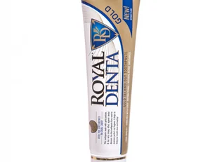 Stworzona z myślą o wyjątkowej ochronie zębów i dziąseł pasta, wzbogacona o złoto, witaminę E i ksylitol, wzmacnia dziąsła, a bioaktywne składniki takie jak ekstrakty z grejpfruta i zielonej herbaty tonizują je. Hydroksyapatyt remineralizuje i wzmacnia powierzchnię szkliwa zęba, zapobiega odkładaniu się płytki nazębnej i pomaga wyeliminować nieświeży oddech. Nadaje się do stosowania na estetycznie uszczelnione zęby, implanty. Żelowa konsystencja delikatnie poleruje powierzchnię zębów, usuwając nierówności i zapobiegając gromadzeniu się bakterii, dzięki czemu zęby dłużej pozostają czyste. Pasta do zębów o niskim stopniu ścieralności - RDA 44. Nadaje się do mycia zębów szczoteczką elektryczną lub zwykłą szczoteczką, ale zaleca się stosowanie szczoteczki Royal Denta Gold.