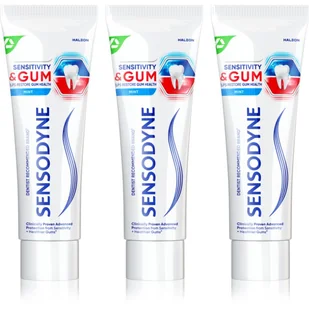 Sensodyne Sensitivity & Gum, 3x75 ml, Pasty do zębów unisex, Pasta do wrażliwych zębów Sensodyne Sensitivity & Gum gwarantuje, że będziesz się delektować zimnymi lub gorącymi napojami bez nieprzyjemnych odczuć. Pożegnaj się z nadwrażliwością zębów. Właściwości: zmniejsza wrażliwość zębów wzmacnia szkliwo zębów chroni zęby przed próchnicą i osadem nazębnym pielęgnuje odsłonięte szyjki zębowe naprawia naruszone miejsca szkliwa zębów utrzymuje świeży oddech Sposób użycia: Wskazane jest stosowanie pasty co najmniej 2 razy dziennie, rano i wieczorem lub po każdym posiłku.