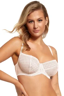 Klasyczny, elegancki biustonosz w kratkę. miękkie miseczki z dwoma cięciami: pionowymi i poziomymidruty podtrzymują i kształtują piersimiędzy miseczkami malutka kokardkaramiączka regulowane, nieodpinanezapięcie z tyłu na haftkiplecy z gładkiej, elastycznej dzianinyDo kompletu polecamy figi 2357. Skład: 85% poliamid, 15% elastan