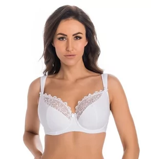 - Damski stanik półusztywniany w kolorze białym- Zdobiony jest elastyczną koronką o motywie kwiatowym- Biustonosz posiada fiszbiny i wysoki mostek- Stanik po...