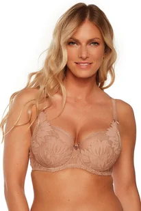 Elegancki biustonosz półusztywniany. górna część miseczki wykonana jest z siateczkimiseczki oraz mostek pokryte są piękną koronkąmiędzy miseczkami kokardka z przywieszkąozdobne, koronkowe wyjście na ramiączkopogłębione miseczki, idealnie podtrzymują biustramiączka regulowane, nieodpinane, różnej szerokości dostosowanej do rozmiaruozdobne kokardkipionowe fiszbiny bocznezapinany na dwie lub trzy haftki z trzystopniową regulacjątył wykonany jest z elastycznego materiałukonstrukcja SS10Do kompletu polecamy figi 1134 lub brazyliany 1135. Skład: 57% Poliamid, 18% Bawełna, 10% Elastan, 10% Poliester, 5