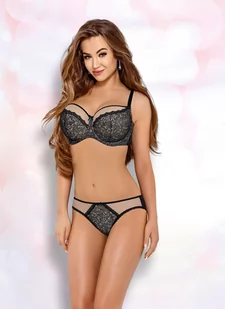– piękny, półusztywniany biustonosz, – uszyty na nowej konstrukcji, – doskonale zbiera i utrzymuje biust, – wykonany z koronki, plenu oraz pianki, – na środku drobna czarna kokardka, – nieodpinane, szerokie ramiączka.