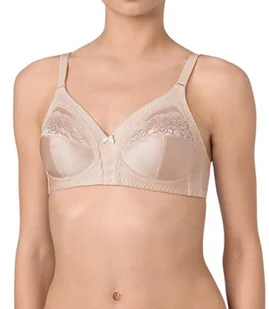 Niezwykle wygodny biustonosz z miękkimi, zabudowanymi miseczkami bez fiszbin. Model posiada poziome i pionowe cięcia. Górną część miseczek zdobi kwiatowa kor...