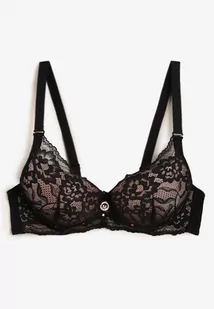 Czarno-Beżowy Biustonosz z Koronką i Funkcją Push Up Wifia