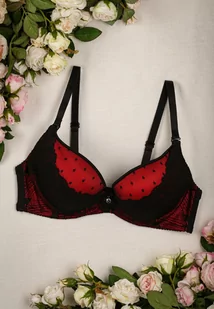 Czarno-Czerwony Biustonosz z Koronkowymi Wstawkami i Efektem Push Up Sellish