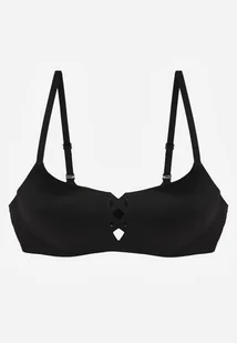 Czarny Biustonosz o Gładkim Wykończeniu z Imitacją Wiązania Azisene