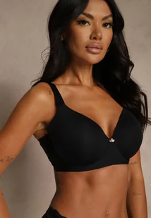 Czarny Klasyczny Biustonosz o Gładkiej Fakturze Adriaros