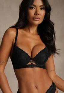 Czarny Klasyczny Biustonosz Zdobiony Koronką i Aplikacją Metheis