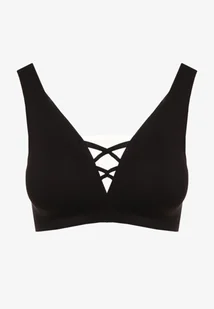 Czarny Sportowy Biustonosz Zdobiony Siateczką i Gorsetową Aplikacją Salinalla