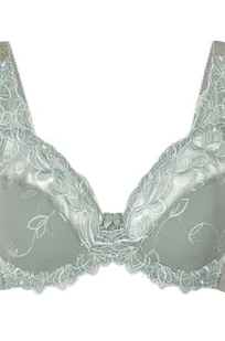 Nieusztywniany biustonosz z fiszbinami, wykonany z nieprześwitującej tkaniny z półprzezroczystą koronką u góry. Miseczki ozdobione są kwiatowym wzorem. W połączeniu z pasującymi figami Diva, otrzymasz kompletny zestaw bielizny. Niewyściełany Miseczki z fiszbinami Zapięcie na haftki (3x2 haftki) Dostępny także w dużych rozmiarach miseczek (E+) Zapięcie z tyłu Całkowicie zakrywa