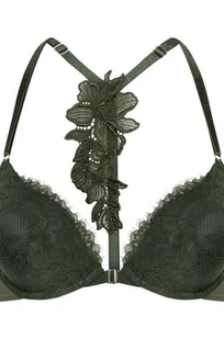 Nasz biustonosz Plunge Push-Up to połączenie odwagi i piękna. Głęboki dekolt podkreśla naturalne kształty, a usztywniane miseczki i fiszbiny dodatkowo podnoszą i utrzymują biust. Metalowe zapięcie na haftkę nadaje nowoczesny charakter, a krój typu racerback jest funkcjonalny i stylowy. Połącz z dopasowanymi majtkami, aby stworzyć idealny zestaw. Efekt push up Wyściełany Regulowane ramiączka Miseczki z fiszbinami Niewyjmowane wkładki w miseczkach Z fiszbinami Skrzyżowane ramiączka