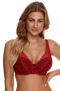 Koronkowy biustonosz typu push-up. Model posiada termicznie formowane miseczki z wkładką żelową. Krój biustonosza zbiera piersi z boków i nadaje im krągły kształt, akcentując linię dekoltu. Koronka stanowi przedłużenie misek do ramiączek, zdobiąc dekolt. Między miseczkami delikatna kokardka w czarnym kolorze, dodająca uroku całości.