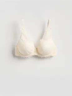 Reserved - Koronkowy biustonosz push up - złamana biel