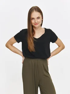 Top damski Top Secret z niebywale okazałym dekoltem w kształcie litery V. Ujmujący swą niecodzienną prostotą oraz wygodą w trakcie użytkowania, top damski o pełnym luzu i swobody kroju z krótkim rękawem zakończonym delikatnym przeszyciem. Posiada on lekko odsłoniętą górną część pleców oraz okazały dekolt z przodu w kształcie litery V wraz z ozdobną lamówką wokół. Uszyty on został z przyjemnej w dotyku oraz przewiewnej tkaniny bawełnianej, sprawdzając się zarówno jako element klasycznej stylizacji do pracy, jak i też podczas wakacyjnych wypraw w gronie przyjaciół. Top damski dostępny w kolorze czarnym TSKS25TOP302899X00.