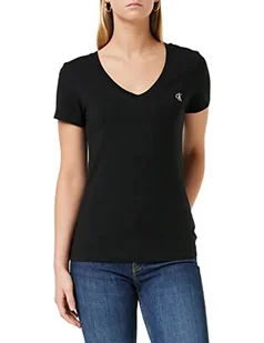 Calvin Klein Jeans Damska koszulka z haftem Ck Stretch V-Neck, Ck czarny, S