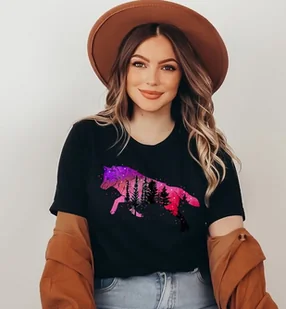 damska czarna koszulka z wilkiem las