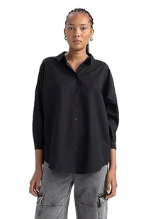 DeFacto Damska koszulka oversize, długa koszulka z długim rękawem, wygodna koszulka z długim rękawem, czarny, XXL