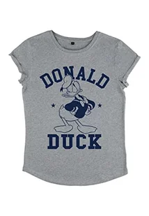 Disney Koszulka damska Mickey Classic-Donald Goes to College Women's Organic Rolled Sleeve, szary (melange grey), XL