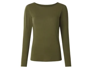 esmara® Koszulka damska z długim rękawem Opis produktu Wykonana z materiałów pochodzących z recyklingu Z dekoltem w łódkę Dopasowana; z elastycznego dżerseju Optymalne dopasowanie i stabilność kształtu dzięki zawartości włókien wysokogatunkowego elastanu Lycra® Cechy produktu ;} Kolory: zielony, czerwony, czarny Cechy: z elastycznego dżerseju Krój: dopasowany Dekolt: w łódkę Materiał:
