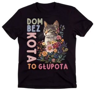 Fajna koszulka ''DOM BEZ KOTA TO GŁUPOTA'' Koszulka wykonana z doskonałej jakości materiałów - 100 % bawełna . Idealna na każdą okazję - świetnie pasuje do wielu stylizacji. Nadruk wykonany w najlepszej technologii na świecie . Można bez problemu prać w pralce. I nic się z nim nie stanie ! Rozmiarówka standardowa.