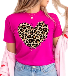 Fuksjowa koszulka serce panterka Koszulka z wyjątkową grafiką . Materiał: bawełna Koszulki mają nieco luźniejszy krój, w stylu over. Tabele rozmiarów znajdziesz poniżej , dla tego kroju. Najlepiej porównać sobie z koszulkami jakie się ma . Ale na przykład jak nosisz standardowo - XS/S - to zamów XS jeżeli S/M - to zamów rozmiar S , jeżeli M/L to zamów M .