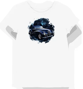 Koszulka damska biała z nadrukiem klasycznego niebieskiego kabrioletu XXL - Koszulka damska idealna na prezent! KozakNadruki – Polska marka i autorskie proje...
