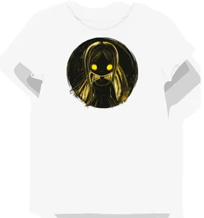 Koszulka damska biała z nadrukiem złotej laleczki Annabelle dla fanów horroru M