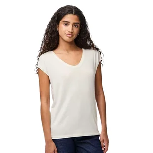 Ten model to idealne połączenie minimalistycznego designu z efektownym wykończeniem. Kremowa tkanina została wzbogacona o delikatne, poziome paski wykonane ze złotej, metalicznej nici, które pięknie odbijają światło, nadając stylizacji wyjątkowego charakteru. Koszulka posiada certyfikat Oeko-Tex Standard 100, co gwarantuje, że materiał jest wolny od substancji szkodliwych i bezpieczny dla Twojej skóry. Dlaczego warto wybrać koszulkę Pieces? Szlachetny skład materiałowy: Dominująca zawartość wiskozy (85%) zapewnia tkaninie wyjątkową miękkość, przewiewność i piękny, lejący chwyt.