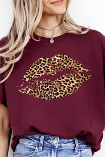 Koszulka damska usta panterka burgundowa