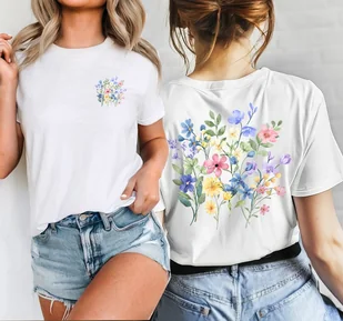 Koszulka damska w kwiaty - wzór kwiatki7T-shirt damski o modnym kroju. Rękawki proste. Koszulka z wyjątkową grafiką . Bluzeczka wykonana z bawełny. Koszulka z nadrukiem -materiał : bawełna.