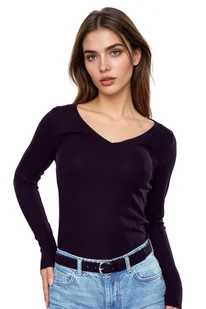 Bluzka Eleonor z długim rękawem to klasyczny model, który łączy prostotę formy z wygodą codziennego noszenia. Dopasowany fason subtelnie podkreśla sylwetkę, a ponadczasowy krój sprawia, że bluzka doskonale wpisuje się w różnorodne stylizacje. Model został wykonany z miękkiej, prążkowanej dzianiny zawierającej 95% wiskozy, dzięki czemu materiał jest przyjemny dla skóry, elastyczny i dobrze układa się na ciele. Dodatek elastanu zwiększa sprężystość tkaniny, zapewniając komfort oraz dobre dopasowanie podczas noszenia. Bluzkę wyróżnia dekolt w kształcie litery V, który delikatnie podkreśla linię szyi i nadaje całości lekko elegancki charakter.