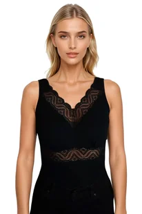 Przód koszulki ozdobiony jest dekoracyjną koronką na dekolcie i pod biustem, co nadaje całości eleganckiego i kobiecego wyglądu. Uniwersalny charakter sprawia, że koszulka doskonale prezentuje się pod swetrem, kardiganem lub marynarką, a jednocześnie świetnie sprawdza się jako lekka i wygodna koszulka nocna. Skład: 95% bawełna, 5% poliamid Fason: dopasowany Szerokość w biuście(cm): S-36, M-38, L-40, XL-42, 2XL-44, 3XL-46 Szerokość dołu(cm):