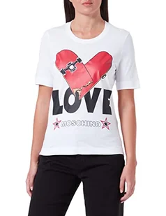 Love Moschino Damska koszulka z krótkim rękawem o regularnym kroju z nadrukiem serca, optical white, 40