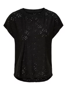 Only czarny ażurowy top XS# Top marki Only okrągły dekolt krótki rękaw prosty fason ażurowy wzór Długość całkowita (cm): 59 Szerokość pod pachami (cm): 51 Fa...