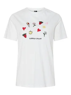 Pieces Koszulka "Alifi" w kolorze białym ze wzorem