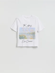 Reserved - Bawełniany t-shirt z nadrukiem - biały
