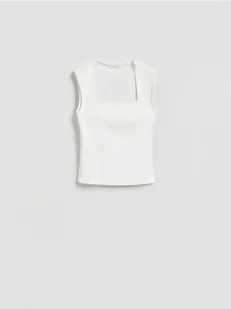 Top o dopasowanym kroju, wykonany z gładkiej dzianiny.