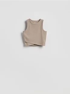 Reserved - Krótki top z zakładkami - beżowy