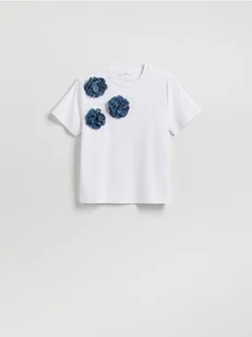 Reserved - T-shirt z kwiatową aplikacją - biały