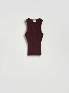 Reserved - Top z prążkowanej dzianiny - mahoniowy