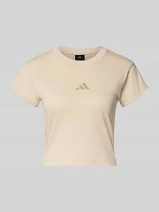T-shirt damski adidas Sportswear;Czysta bawełna;Krój slim fit;Krój krótki;Okrągły dekolt z prążkowanego ściągacza;Nadruk z logo;Długość tyłu w rozmiarze S: 45 cm