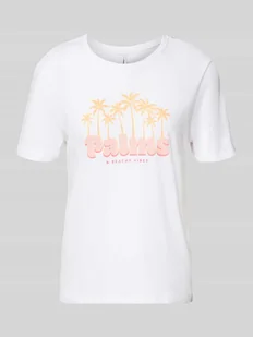 T-shirt damski Only;Model ‘Henny Life’;Efekt: jednolity kolor;Krój: Krój regular fit ;Aplikacja: Nadruk z motywem;Dekolt: Okrągły dekolt;Rękaw: