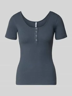 Damski t-shirt od Pieces;Model „Kitte”;Efekt: jednolity kolor;Krój: Krój slim fit;Dekolt: dekolt łódka, Henley;Rękaw: krótki rękaw;Obróbka materiału: prążek;Materiał: Mieszanka bawełny ekologicznej